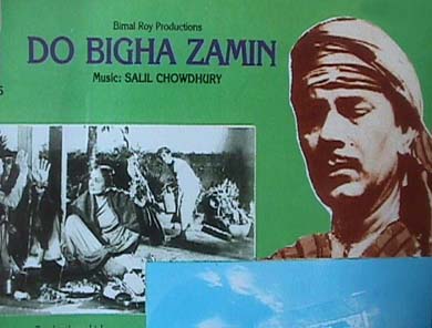 | It is well-known now that the story of "Do Bigha Zameeen" was based on Salil's Bengali short story "Rickshawalah" which he wrote in around 1951/52. His close friend Ritwick Ghatak showed it to Bimal Roy visiting Calcutta in 1952. Bimal Roy liked it very much and decided to make "Do Bigha Zameen". He invited Salil initially to write the script but later also to compose the music. In the famous composition "Dharti Kahe pukarke" Salil used one line from the famous Russian Red Army March Song "Polyushka Polye" (also known as Meadowlands  in English) to compose the line "mausam beeta jaay" .He  changed just one note from "shudh gandhar" (major third) to "komal gandhar" (minor third) to give it a feeling of "bhairavi" raag !  The Bengali version "Rickshawalah" was made in 1955.  |